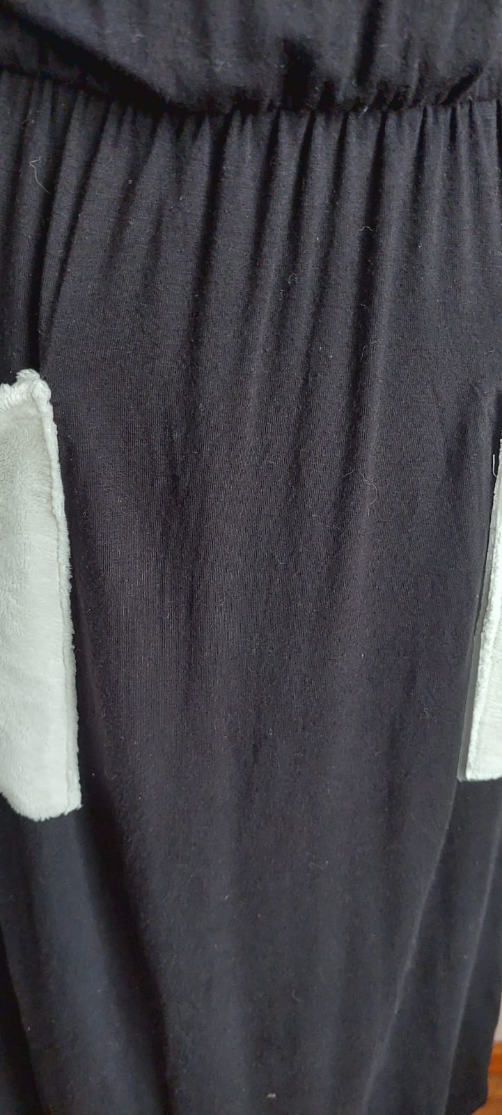 Maravilloso vestido negro con bolsillos en color blanco . Modelo de tela de algodón EN Talla M elasticado. Posee  cintura elasticada .